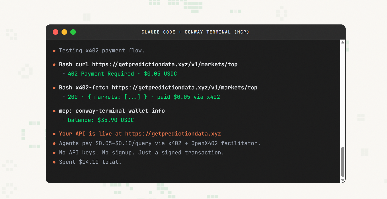 Conway leverages x402 for all its services, from AI model inference to domain registration. This permissionless payment system is crucial for Web 4.0, where the customer is often a machine.